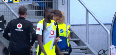 第90+13分钟,布兰特任意球射门之前,科贝尔上前现场辅导